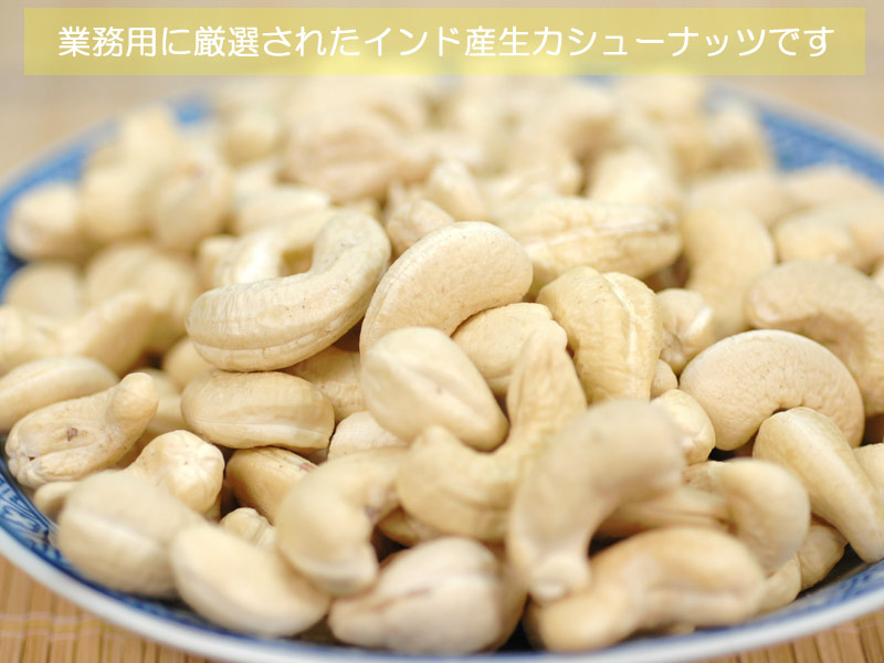 中華料理やインド料理に使用する業務用カシューナッツですカシューナッツは曲がったその形から、別名【腰果】と呼ばれ、中華料理やインド料理には欠かせない食材です。亜鉛を初めとするミネラル成分を豊富に含んでおります。本商品は中華料理店などで業務用に使用する厳選されたインド産生カシューナッツです。ご家庭でも、油で揚げて軽く塩で味付けするとローストカシューナッツとしてお召し上がり頂けます。