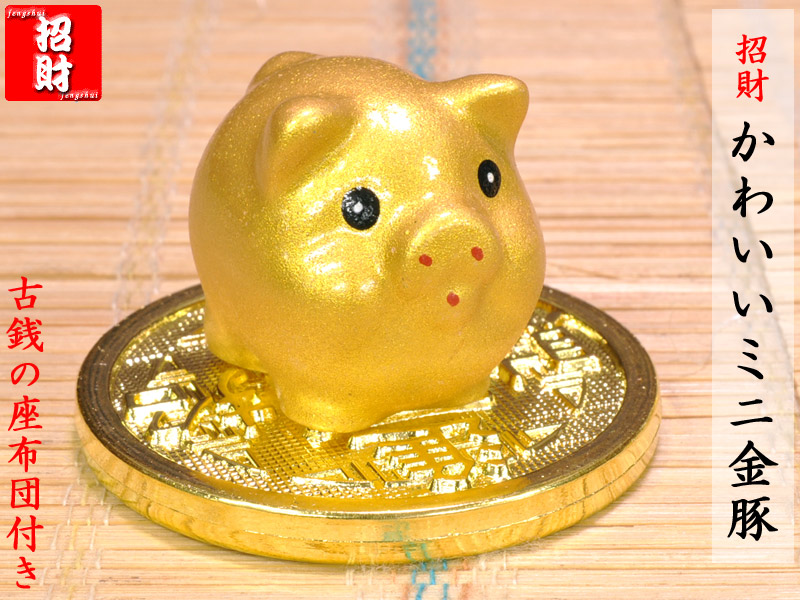 財運アップ!かわいいミニ金豚(古銭の座布団付き) |